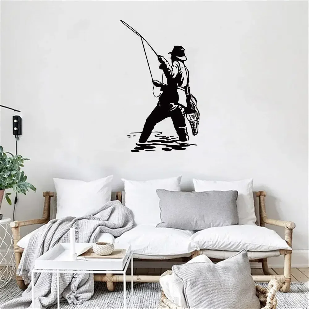 Fly Fishing Wall Sticker Fishing Silhouettes Wall Art Decal Home Decor for Living Room Bedroom Vinyl Dw20260