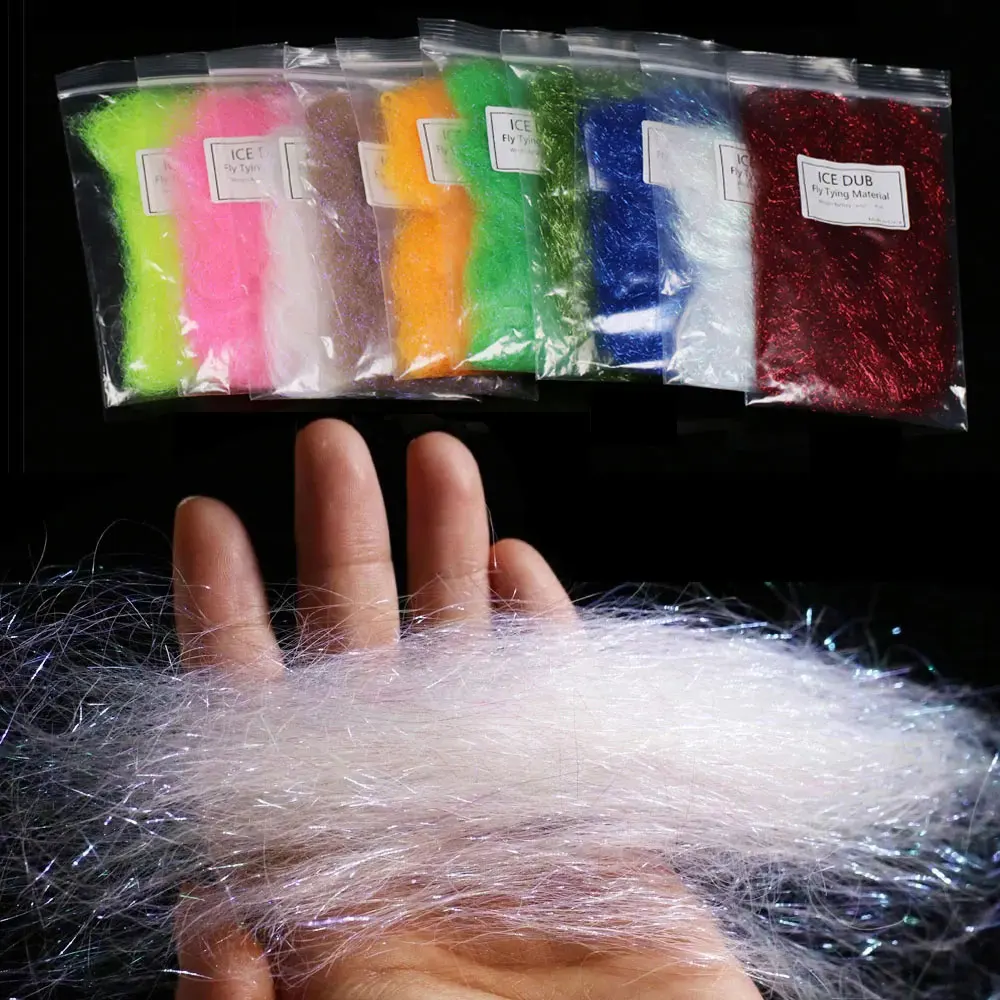 2/6Bags 3.15" Long Ice Dubbing Fly Tying Material Synthetic Fibers Baitfish Streamer Flash Thin Ice Wing Trout Sea Fishing Lures