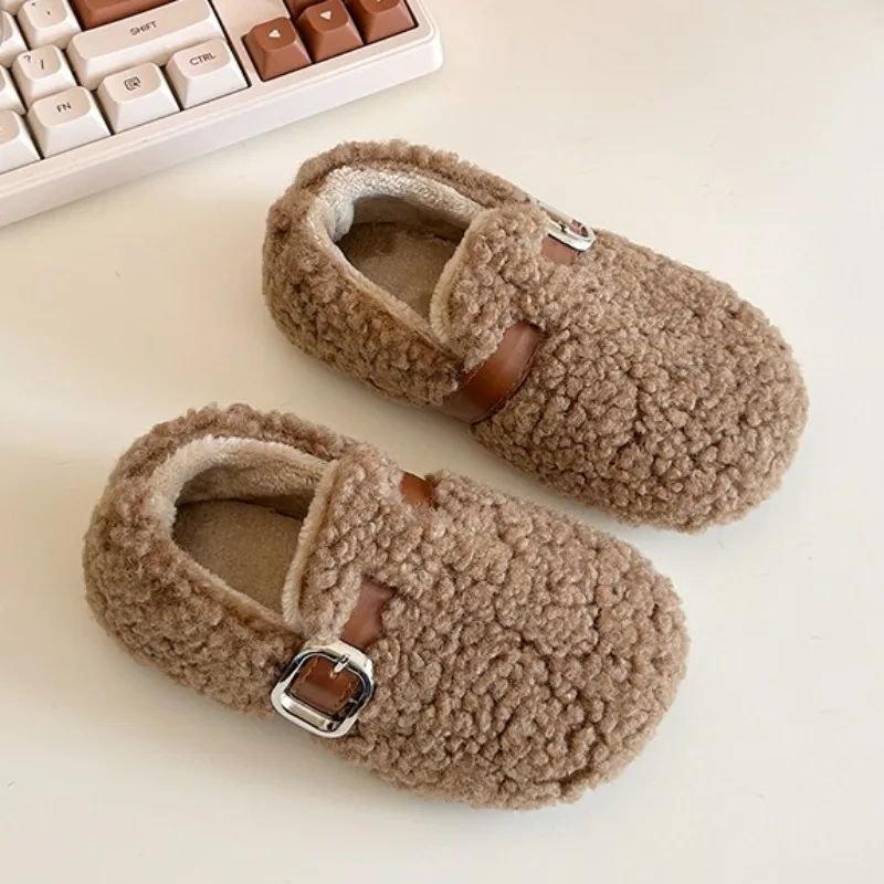 Children flats Shoes for Winter Soft Soled Baby Shoes Indoor Plush and Thick Furry Shoes for Kids Non-slip Boys Girls Slippers
