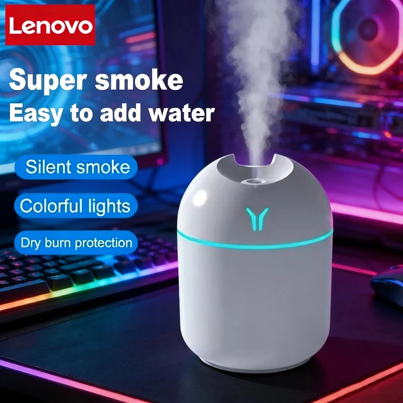 Lenovo Air Humidifier With Dual Spout High Capacity Essential Oil Diffuser cool Mist Maker Silent NightLight For Home Car Office