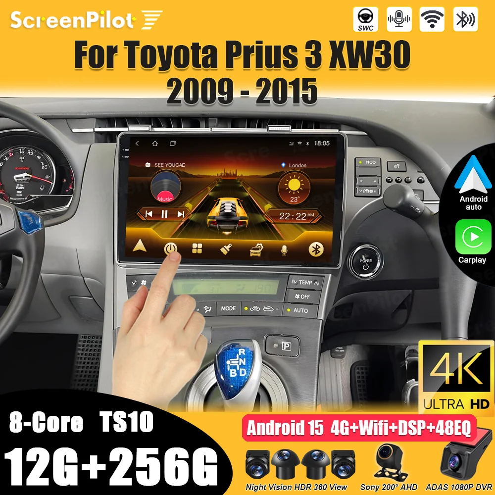 Car Radio Android 15 Carplay For Toyota Prius 3 XW30 2009 - 2015 LHD RHD Multimedia Video Player Navigation GPS Stereo Head Unit