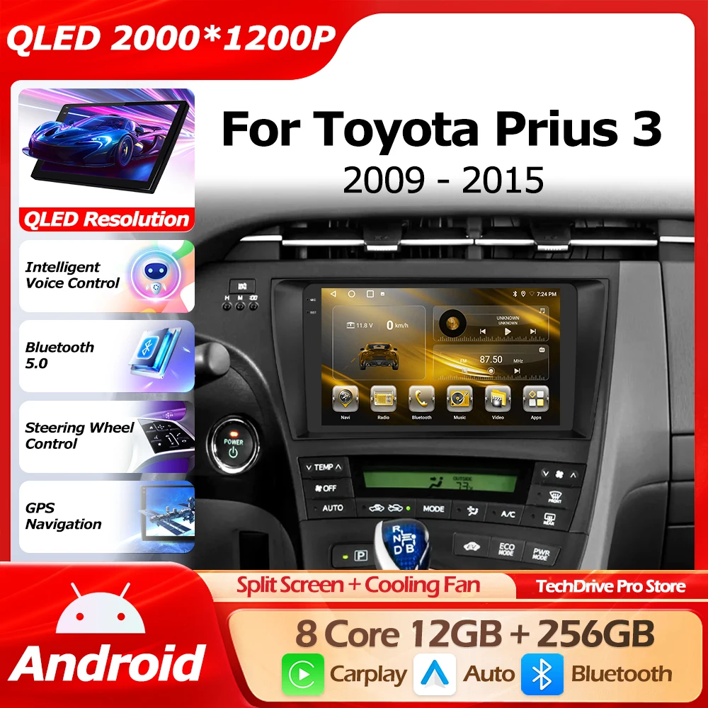 Android 16 Auto Car Radio Carplay For Toyota Prius 3 XW30 2009-2015 Multimedia Video Player Stereo 4G Navigation GPS QLED NO DVD