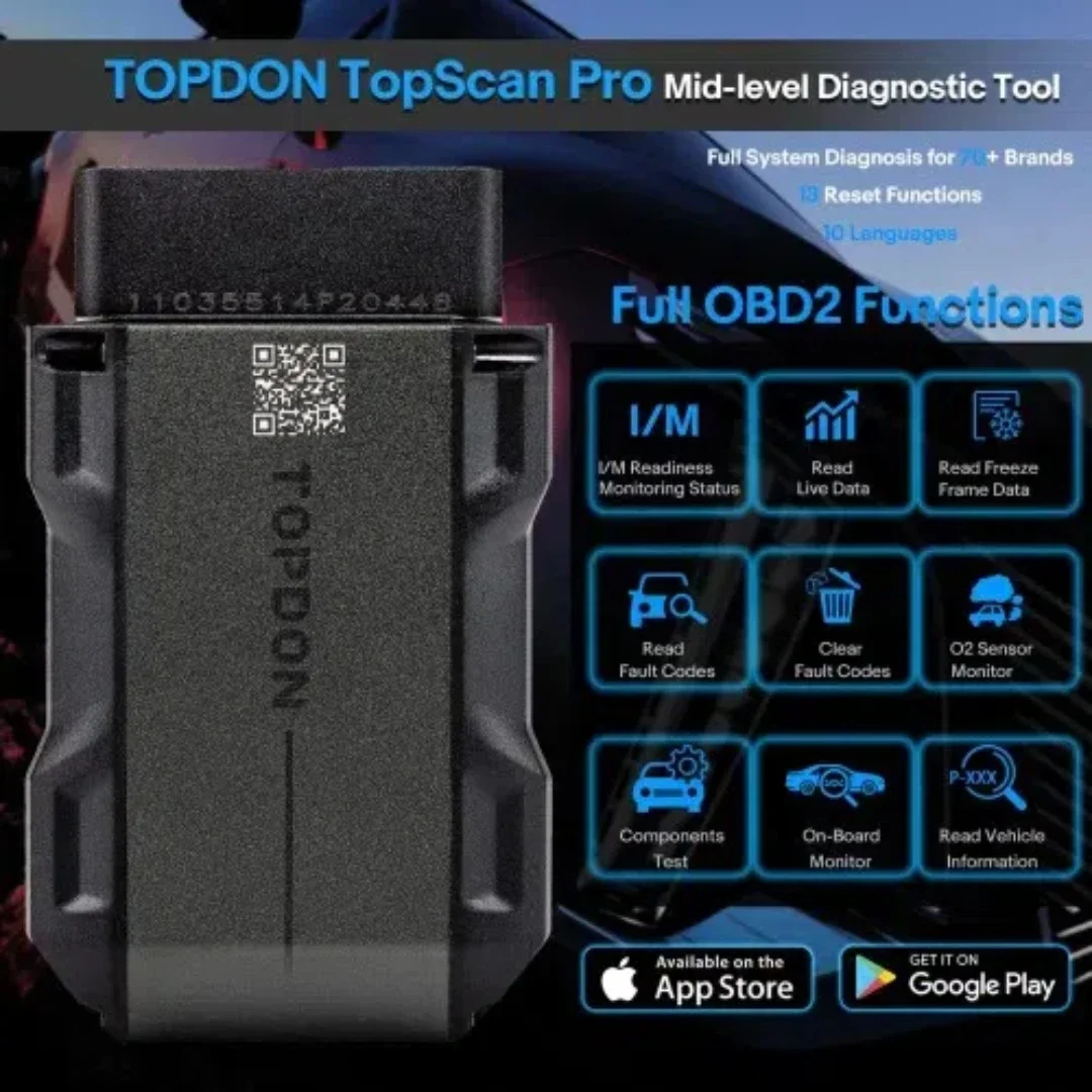 2025 New TOPDON TopScan Pro Mid-level Diagnostic Tool 13 Reset Functions I/M Readiness Injector Coding Tire Pressure Reset