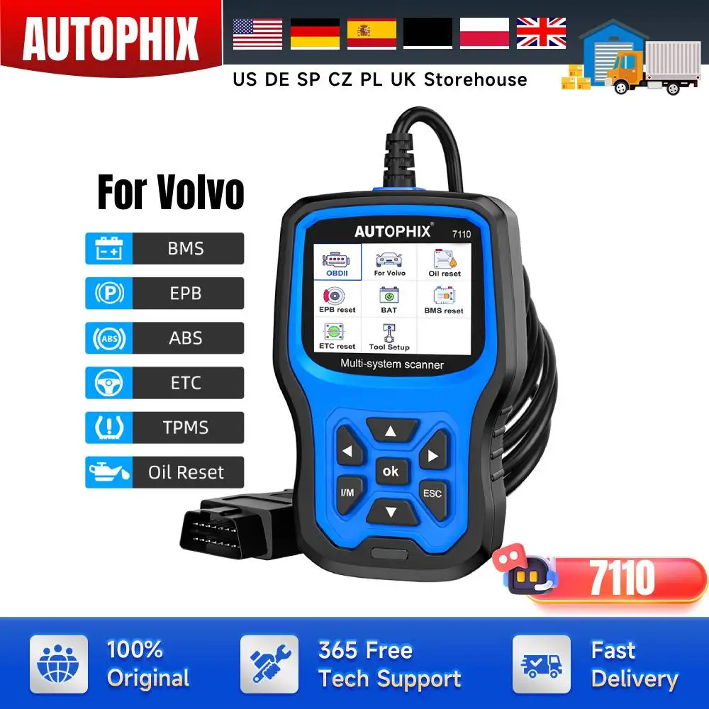OBD2 Scanner for Volvo Full Systems TPMS EPB Car Code Reader Battery for All Volvo After 1996 Scan Diagnostic Tool AUTOPHIX 7110