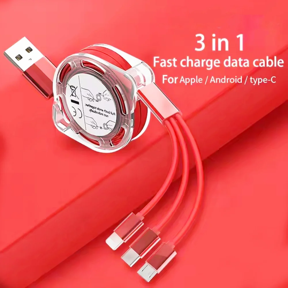 3 in 1 Telescopic Cable Suitable for Apple Type C Android Mobile Phone 3A Fast Charging USB Cable for iPhone Cable Usb C Cable