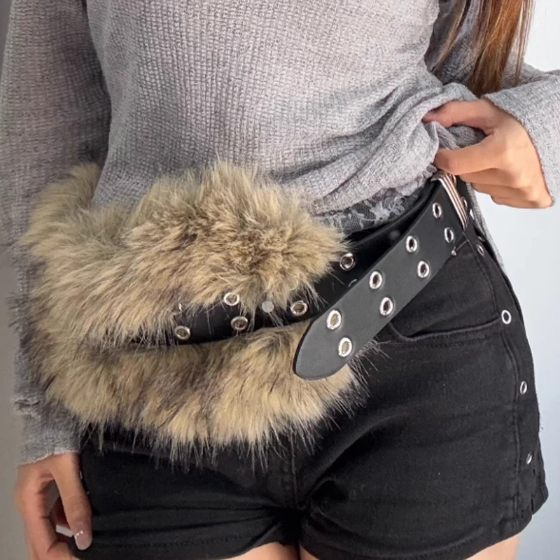Imitation Fur PU Leather Belt Y2K Furry Fur Vintage Belt Girls Gothic Punk Sexy Waistband Autumn Winter Waist Chain Jeans Pants