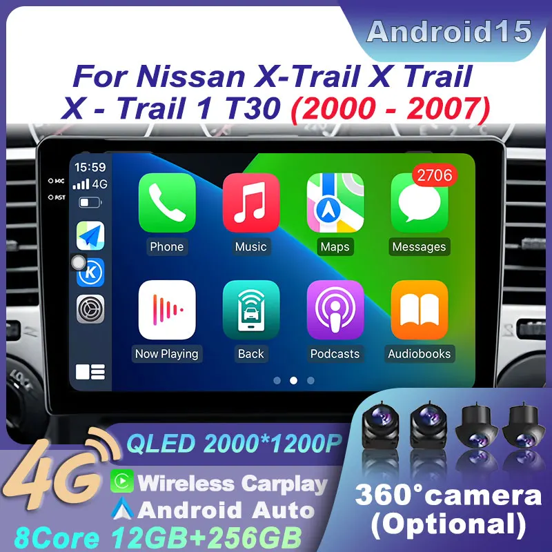 Android 15 Car Player Stereo For Nissan X-Trail X Trail 1 T30 2000-2004 Multimedia GPS Auto Radio Navigation Carplay QLED