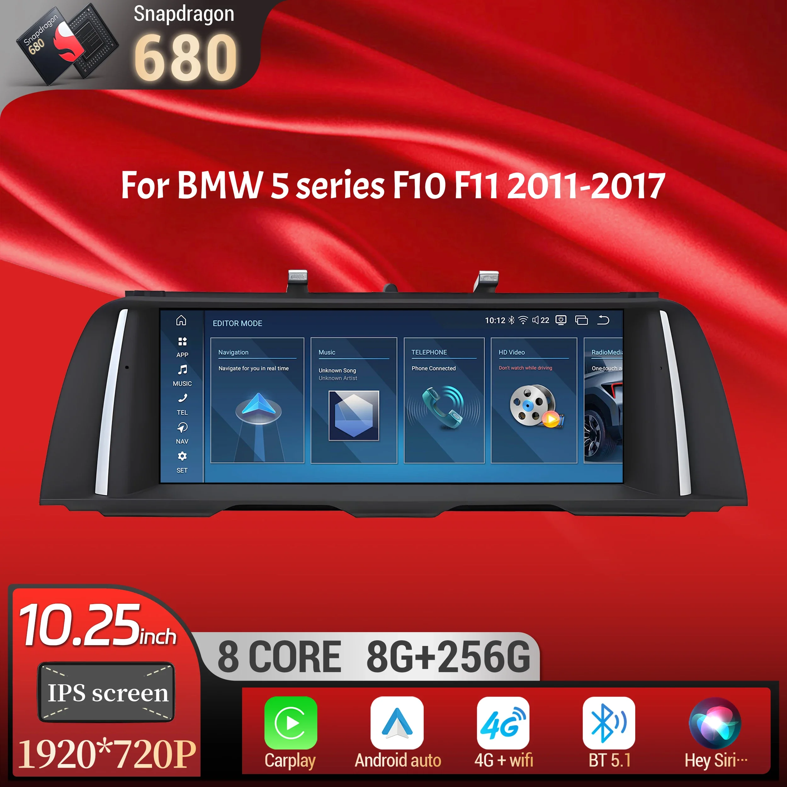 10.25 inch Android 13 For BMW 5 series F10 F11 2011-2017 Car Radio Wireless Bluetooth Carplay Snapdragon 680 Head Unit Screen