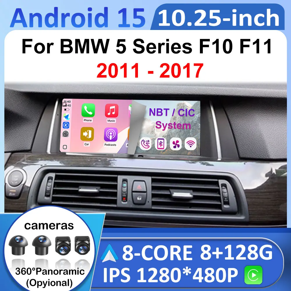 LHD RHD 4G 12.3 inch CIC NBT for BMW 5 Series F10 F11 2010 - 2016 Android 14 Car Player Carplay Radio GPS Navigation 360 Camera