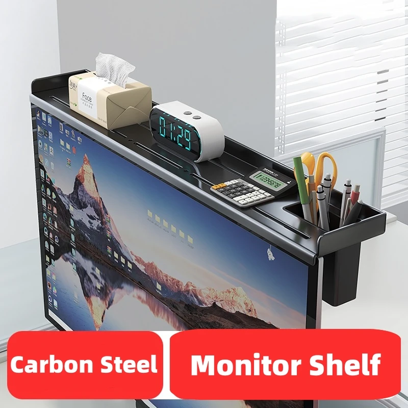 Monitor Top Shelf Steel Floating Computer Stand with Storage Box Office Desktop Stationery Organization TV Top Storage Shelves
