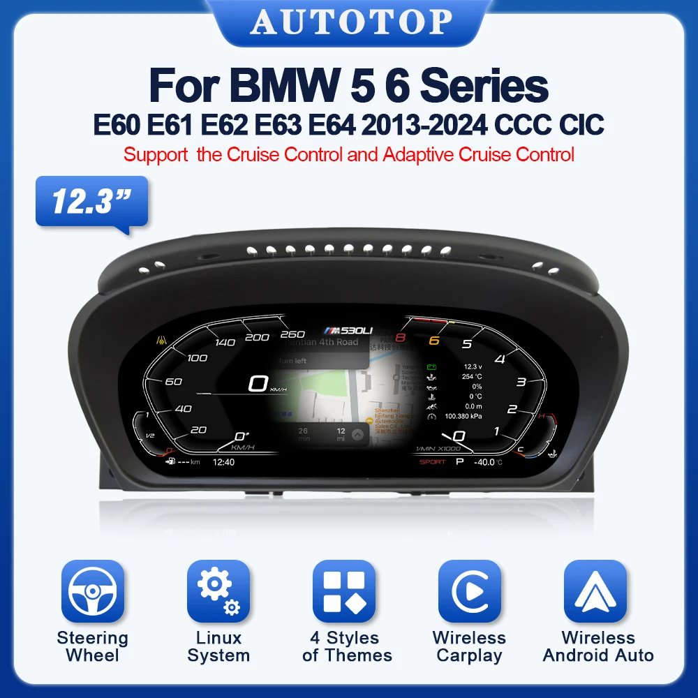 12.3" 1920*720 Linux Digital Display Cluster for BMW 5/6 Series E60 E61 E63 E64 Wireless CarPlay Android Auto LCD Dashboard TPMS