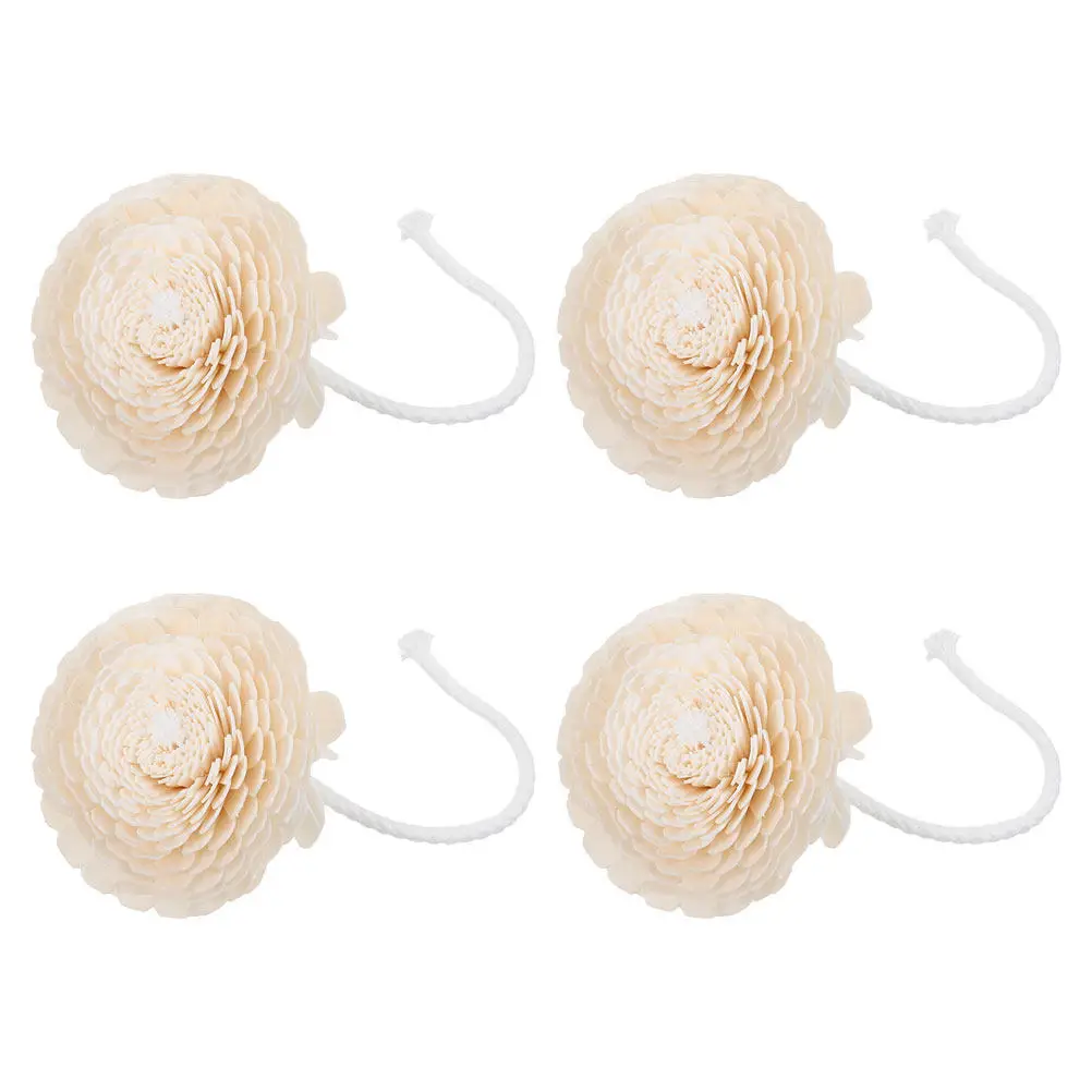 4pcs Wood Flower Aromatherapy Diffuser Natural Cotton Rope Essential Oil Refill For Bedroom Living Room Bathroom Health Care