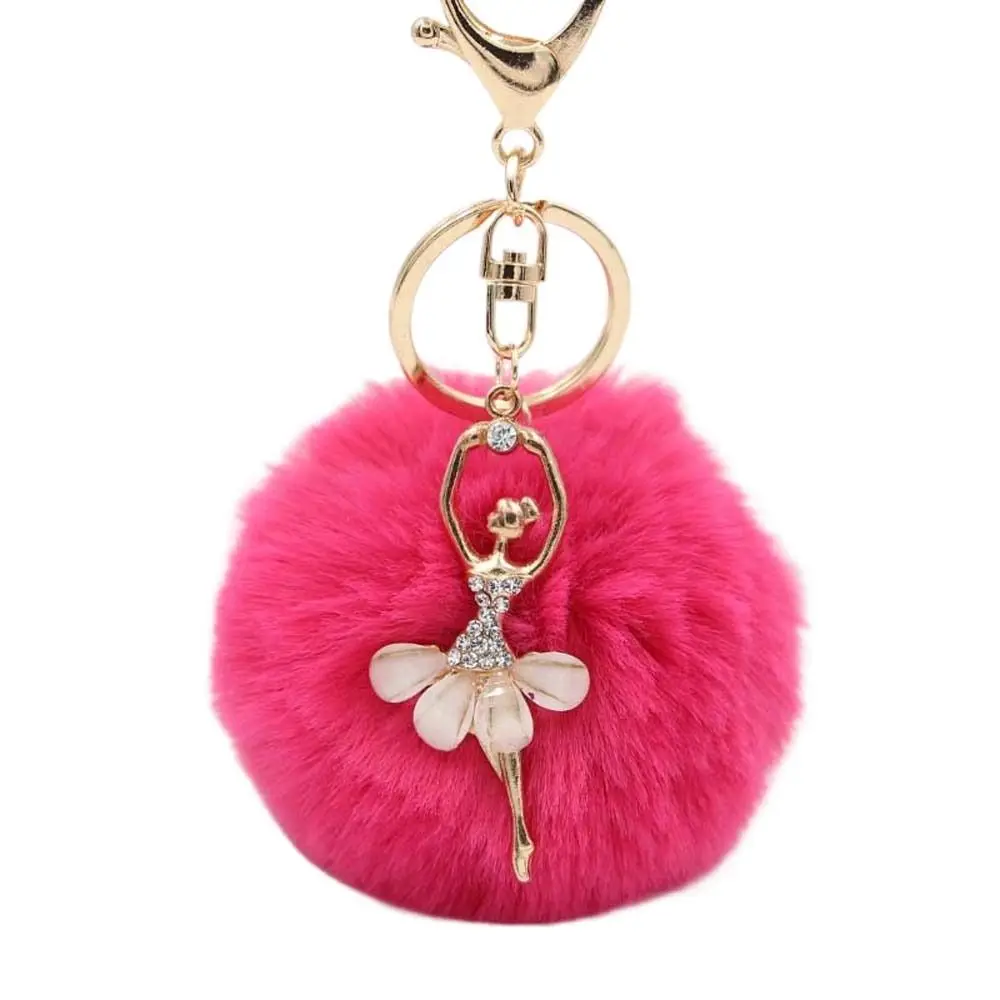 Women Bag Accessories Pompom Key Ring Little Angel Car keychain Fake Fur Key Chain Fur Ball Keyring Ballet Angel Girl keychain