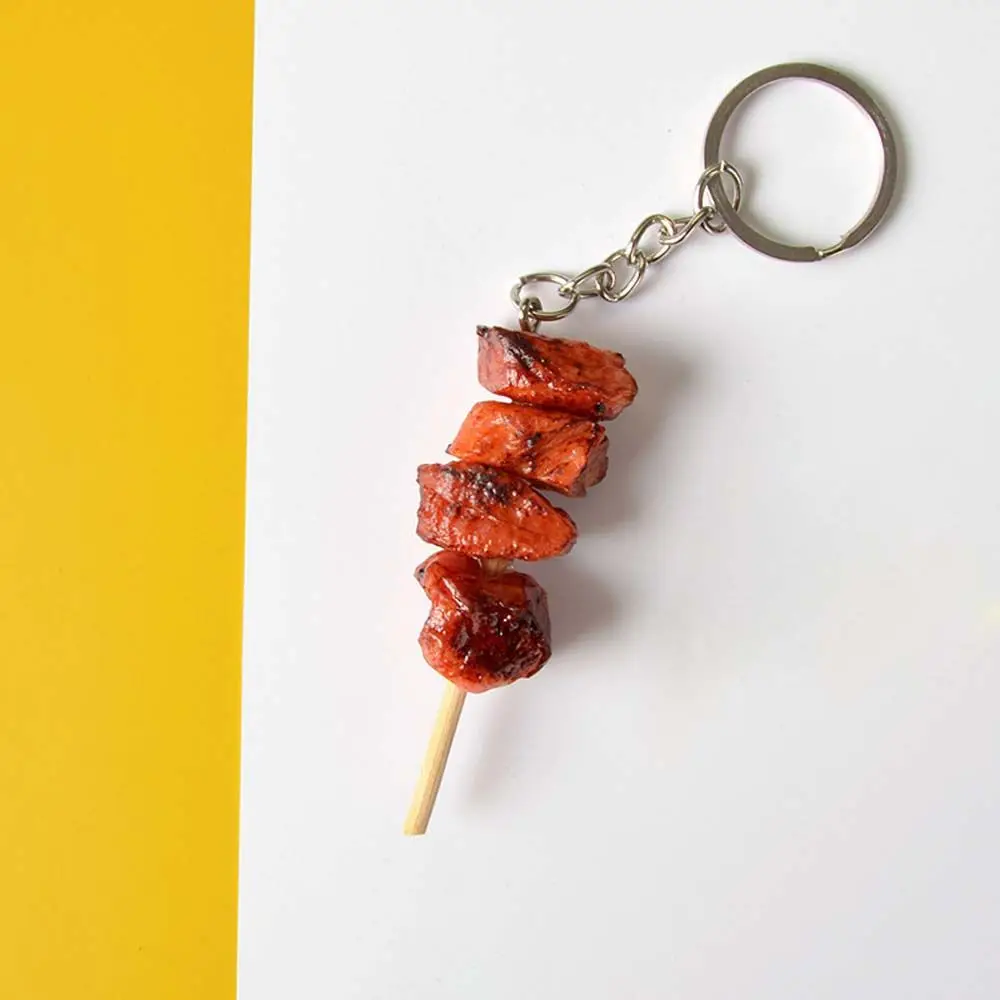 Oden Door Car Key Skewer Squid Simulation BBQ Keychains Women Fashion Jewelry Fake Food Key Ring Korean Style Bag Pendant