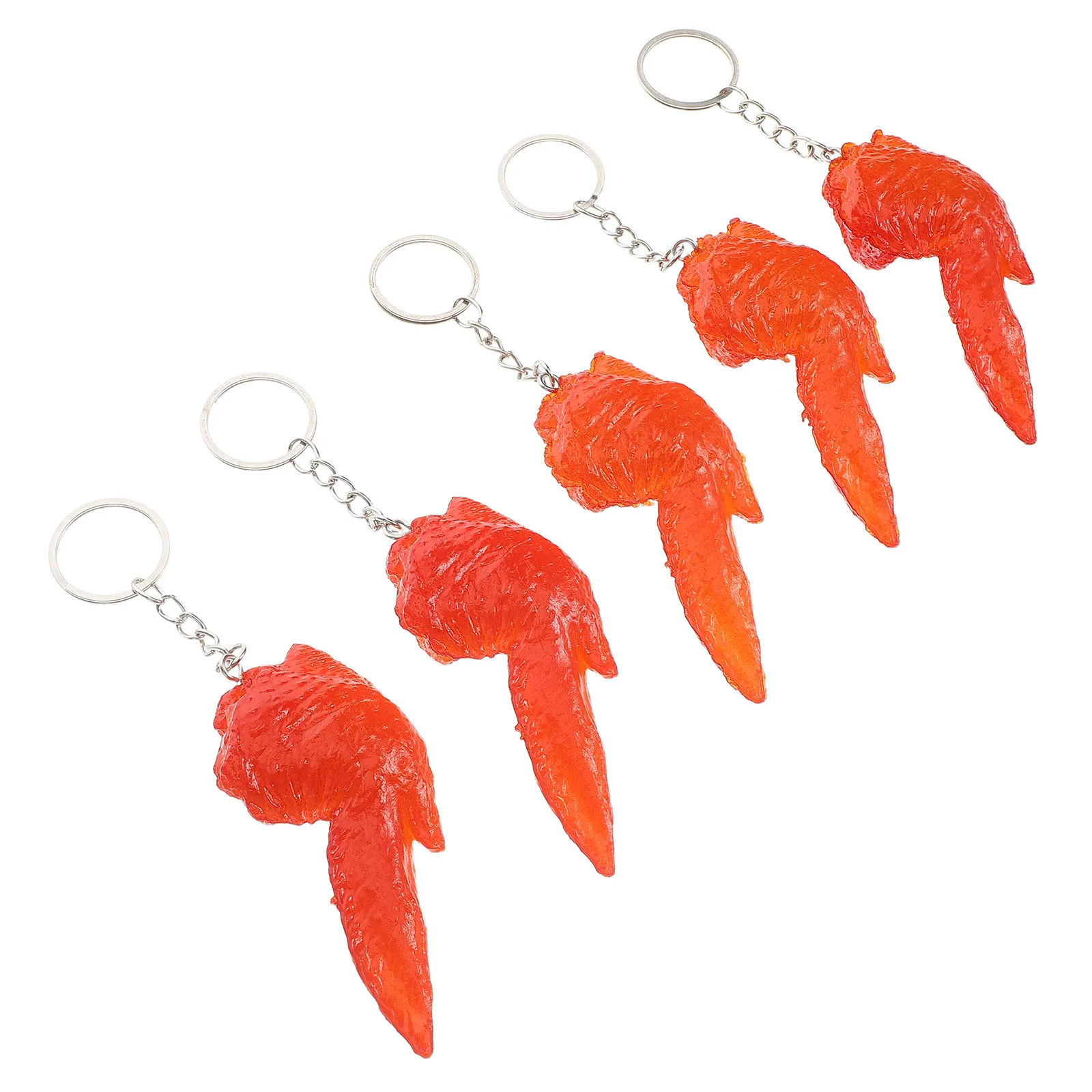 5Pcs Chicken Wing Keychain PVC Realistic Fake Food Key Ring Pendant for Bag Purse Keys Backpack Car Hanging Cute Keychain Women