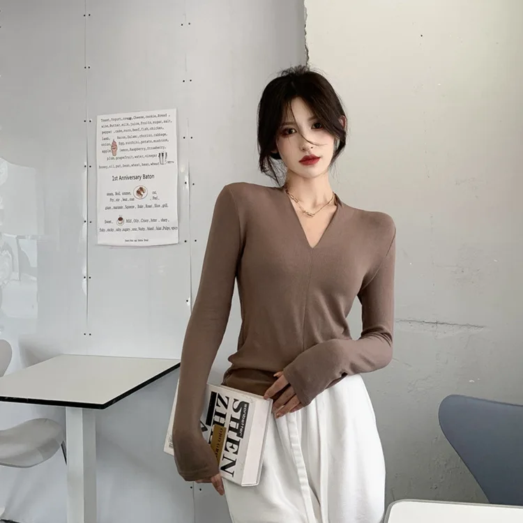 Kawaii Girl Fashion Tops sexy dress Y2K New Temperament V-neck Base Shirt for Women in Spring Autumn new style Fast delivery