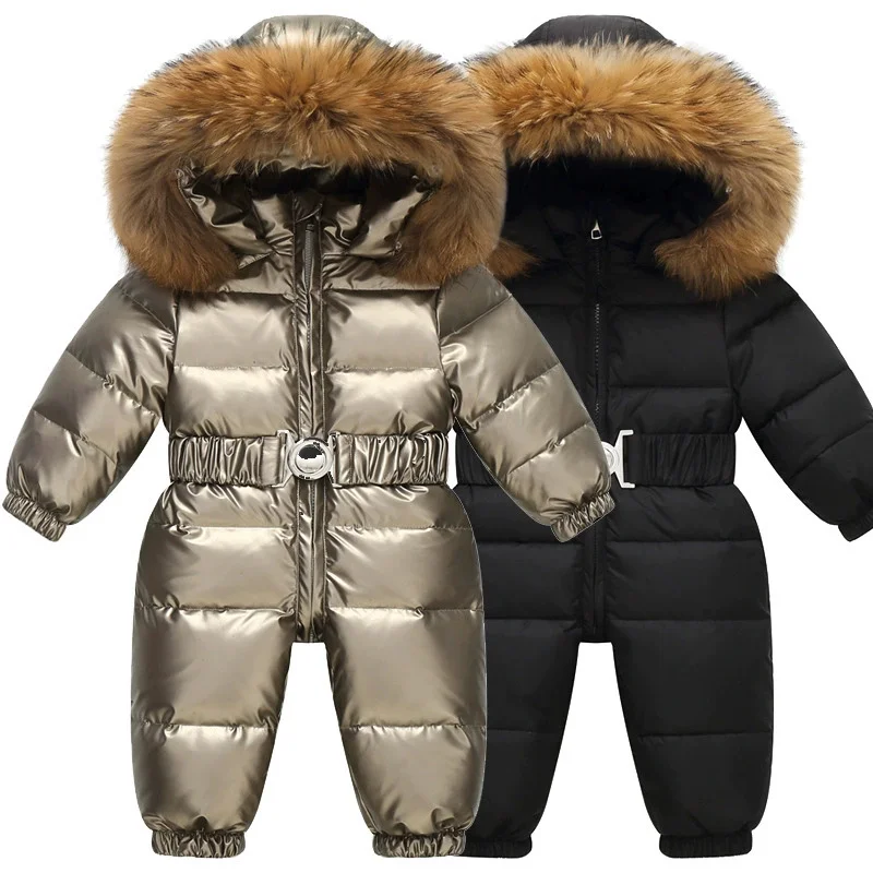 Children Winter Overalls Waterproof Hooded Girl Down Jacket Baby Boy Warm Jumpsuit Toddler Girl Faux Fur Ski Suit Kids Snowsuit