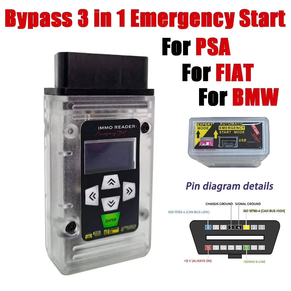 3in1 Immo Reader Emergency Start for PSA for FIAT for BMW Force Ignition Tool OBD2 Key Simulator Programming Tool Plug and Play