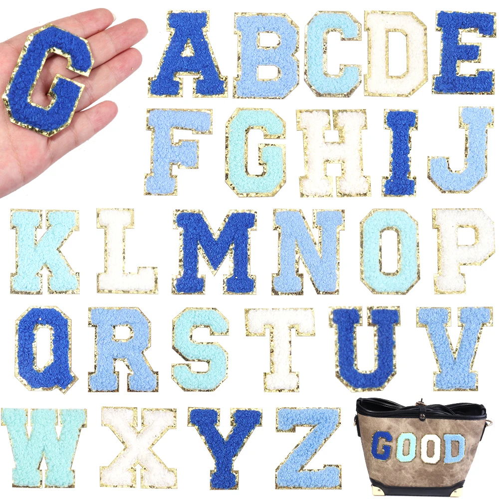 8Pcs Blue Series Letter Chenille Sticker Embroidered Patch Self-Adhesive Applique for Personalized DIY Bag Clothing Crafts