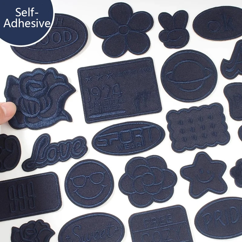 Self-adhesive Navy Blue Patches for Clothing No Need Sew Iron on Clothes Sticker Down Jacket Holes Repair Embroidery Appliques