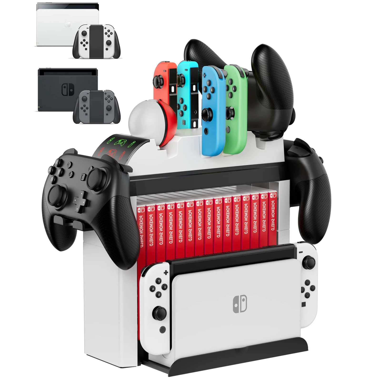 Switch Organizer with Controller Charging Dock Controller Charger Station for Nintendo Switch & OLED Joycon Pro Controller