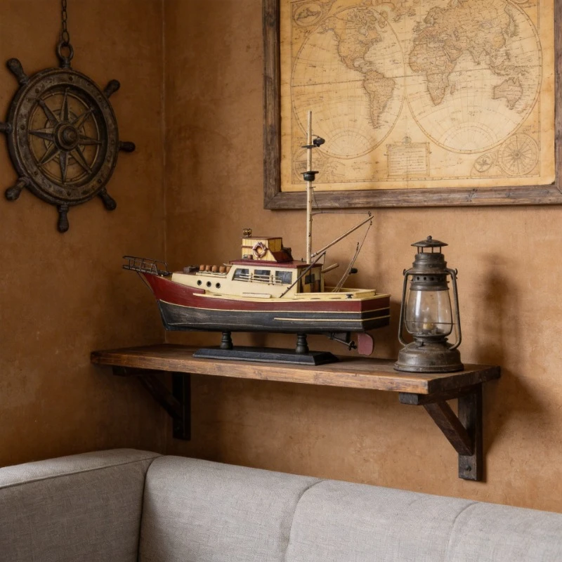 37cm Wooden Model Shark Fishing Boat, Movie-Themed Decorative Replica for Home Decoration