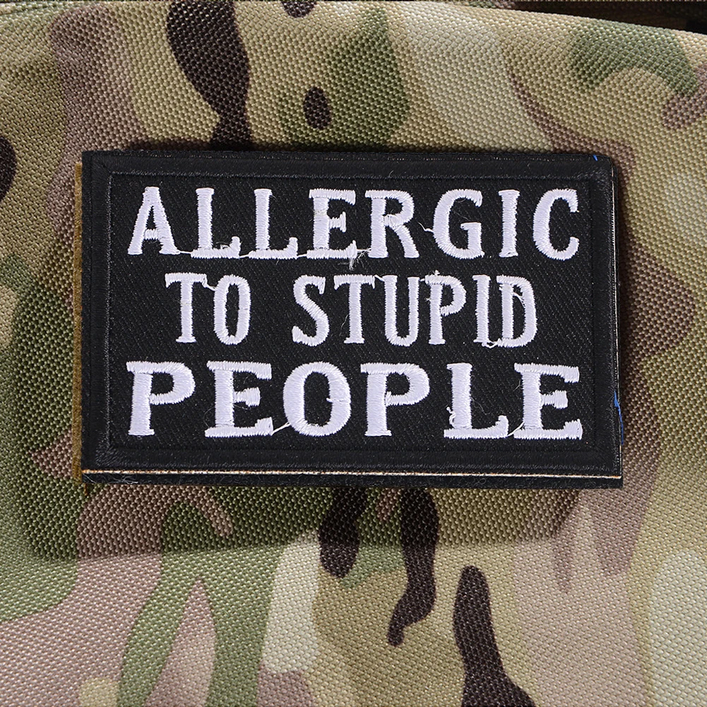 Allergic To Stupid People Embroidered Hook and Loop Patches Exquisite Funny Square Badge Stylish Cap Backpack Apparel Decoration
