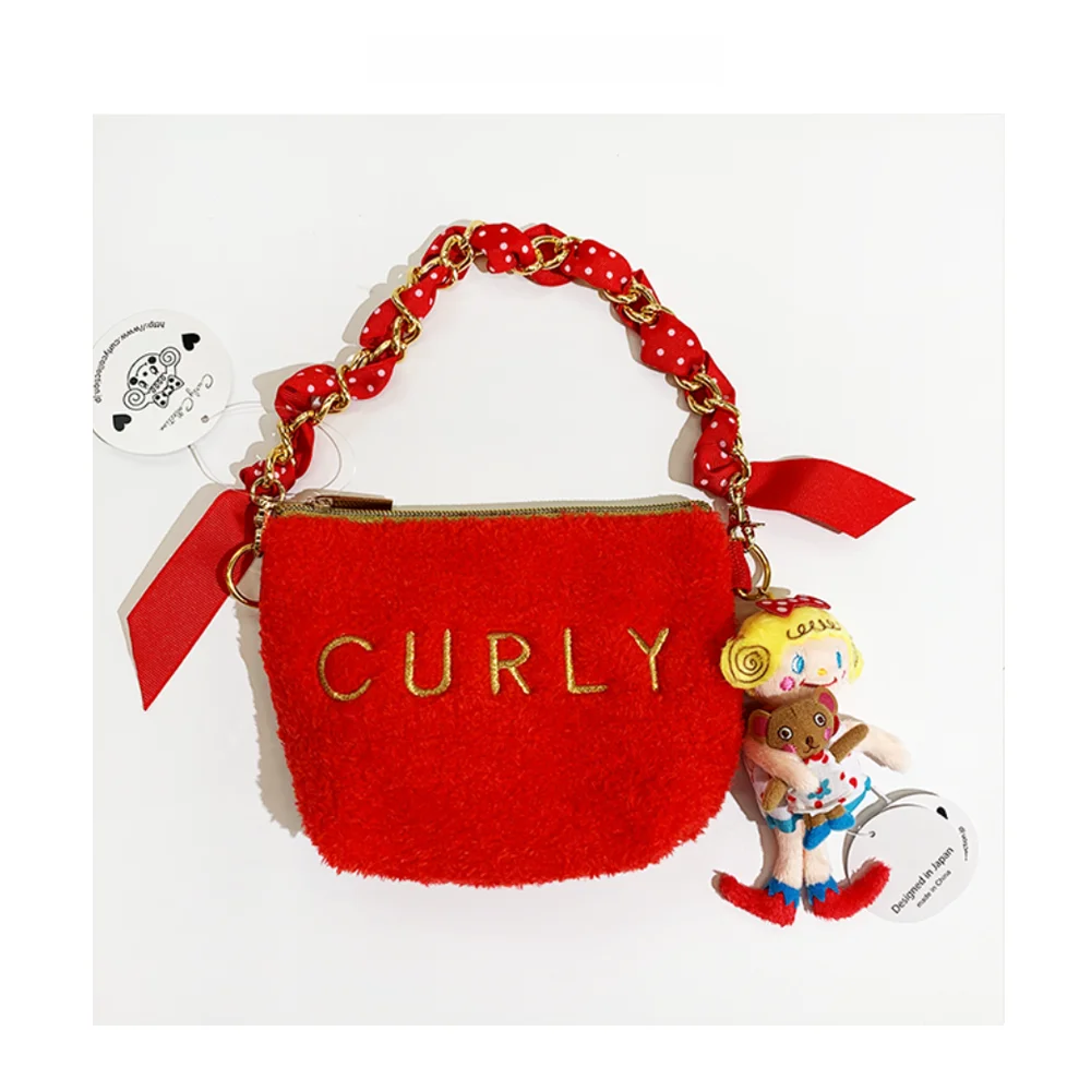 Pink Red Curl Girl Portable Furry Plu Handbag Creative Gift Keychain Brand Other Festival Supplies Handmade Crt