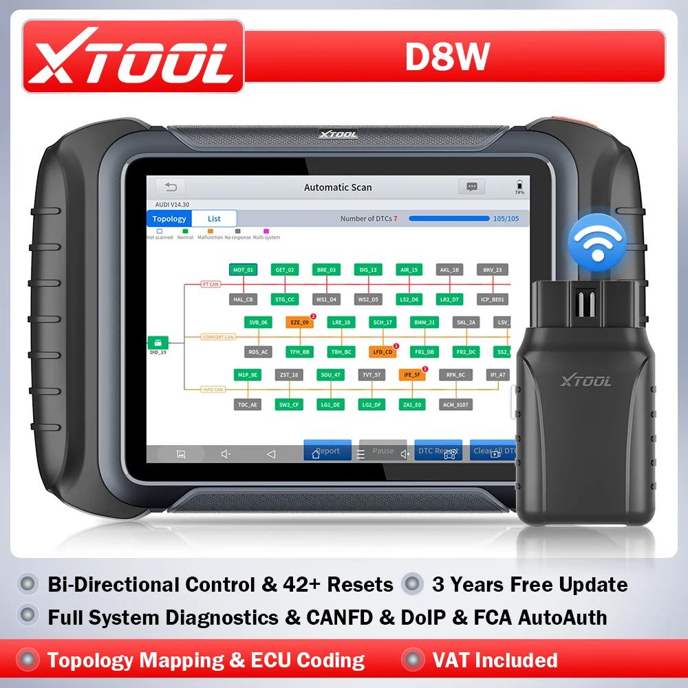 XTOOL D8W OBD2 Scanner Wireless Bidirectional Scan Tool with Topology Mapping ECU Coding Full System Diagnostic Tool for Car PMI 42+ Resets FCA AutoAuth CANFD DoIP 3 Years Free Update