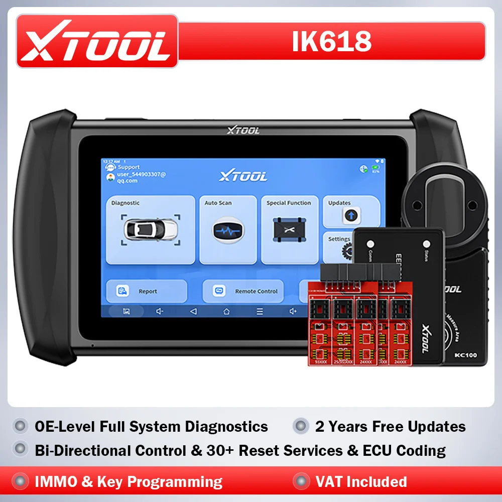XTOOL InPlus IK618 Automotive IMMO Key Programming Tool with KC100 Car OBD2 Scanner Diagnostic Tool Bidirectional Scanner with ECU Coding Active Test 30+ Resets 2-Years Free Update