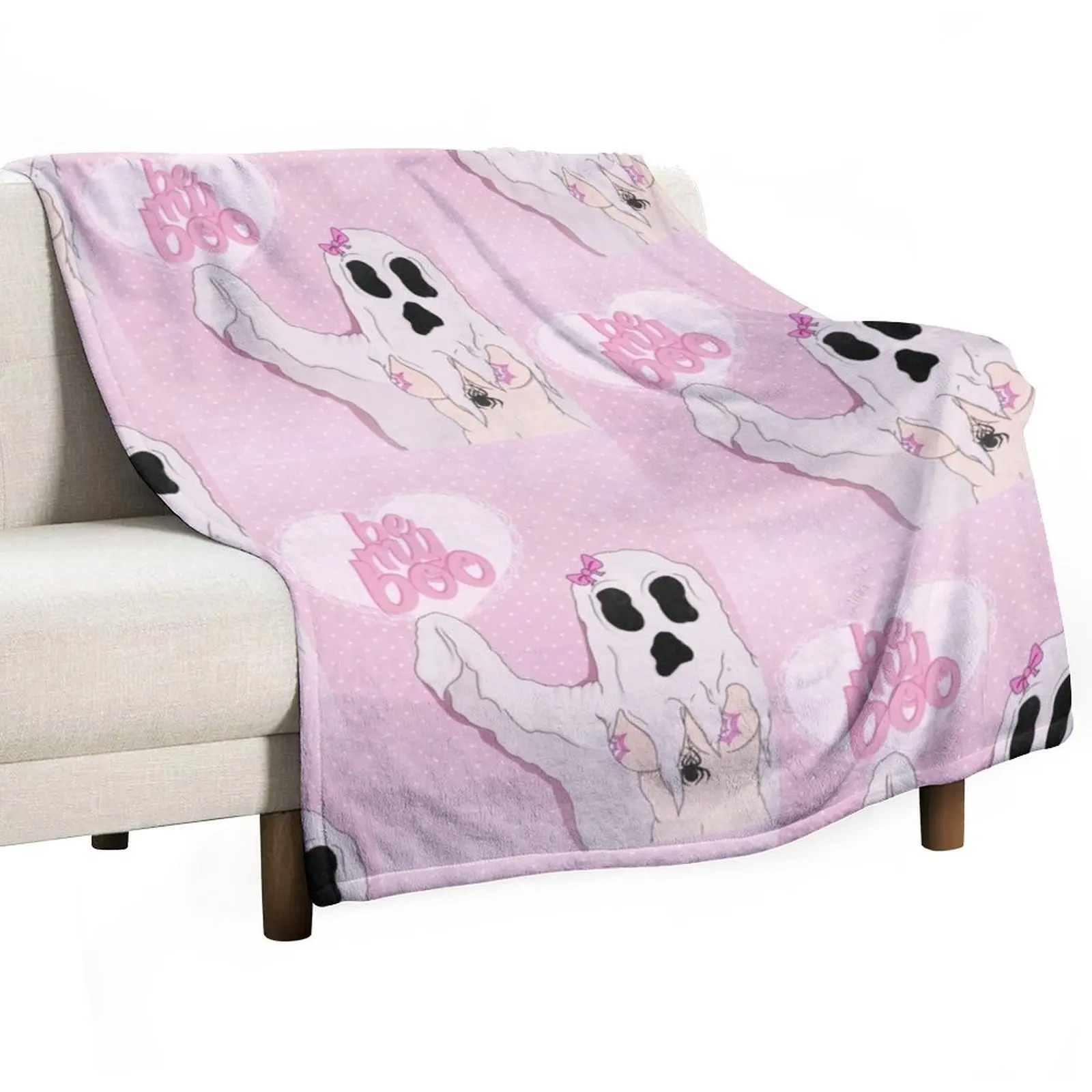 Ghost Girl Valentines Day Card Throw Blanket Cute Plaid Furry Giant Sofa Sofa Quilt Blankets