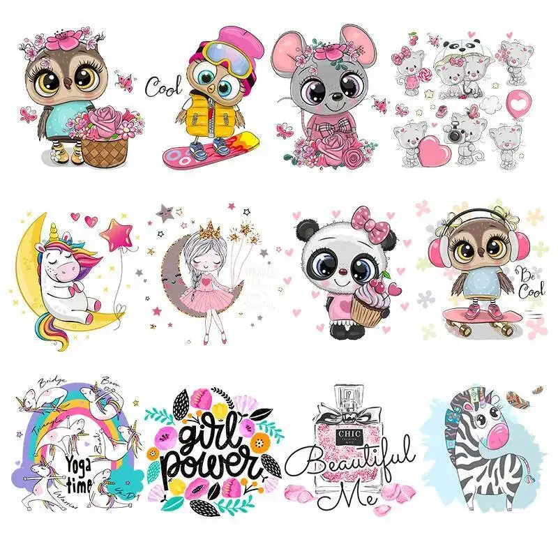 Cute forest animal bird and unicorn heat transfer Stickers DIY Iron On decoration accessories on the beautiful princess dress