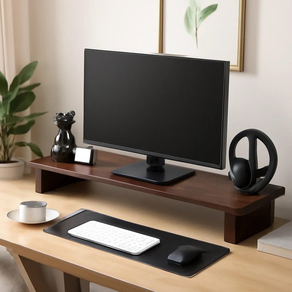 Solid Wood Monitor Stand Riser Desktop Notebook Computer Screen Elevator Ergonomic Organizer Office Desktop Storage Shelf