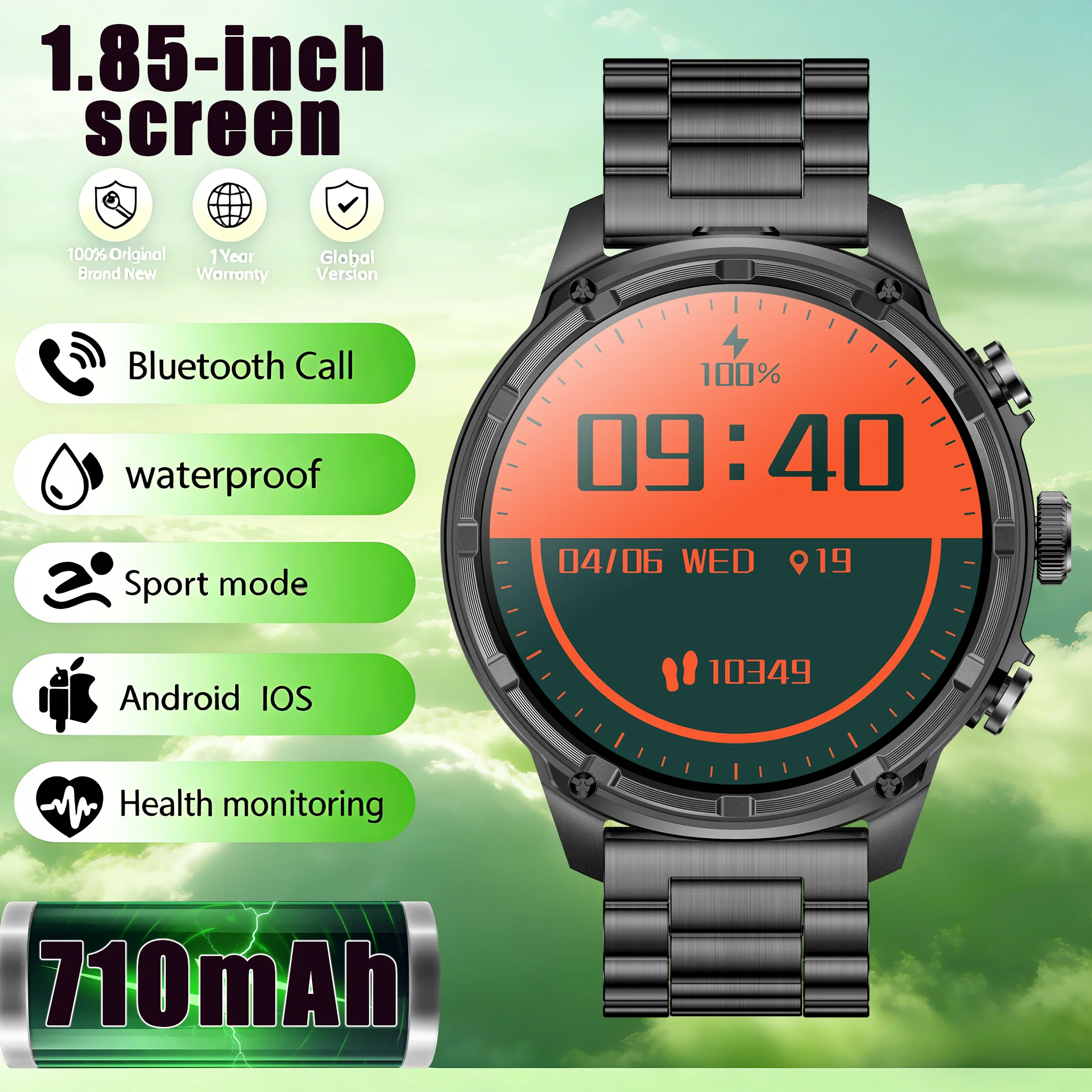 2026 new 1.85''hd screen Smart Watch 710mAh Large battery Bluetooth call Health monitoring Sports Modes Waterproof GPS Compass