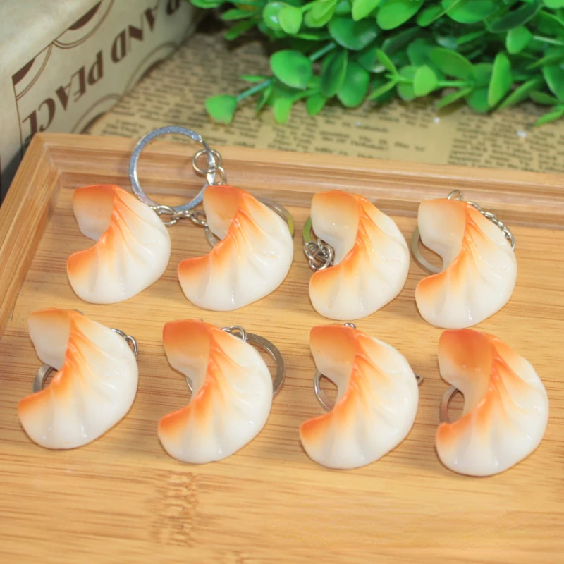 Simulation Dumplings Resin Keychain Fake Food Model Shooting Props Children Toys Car Key Ring Bag Pendant Jewelry Gift Wholesale