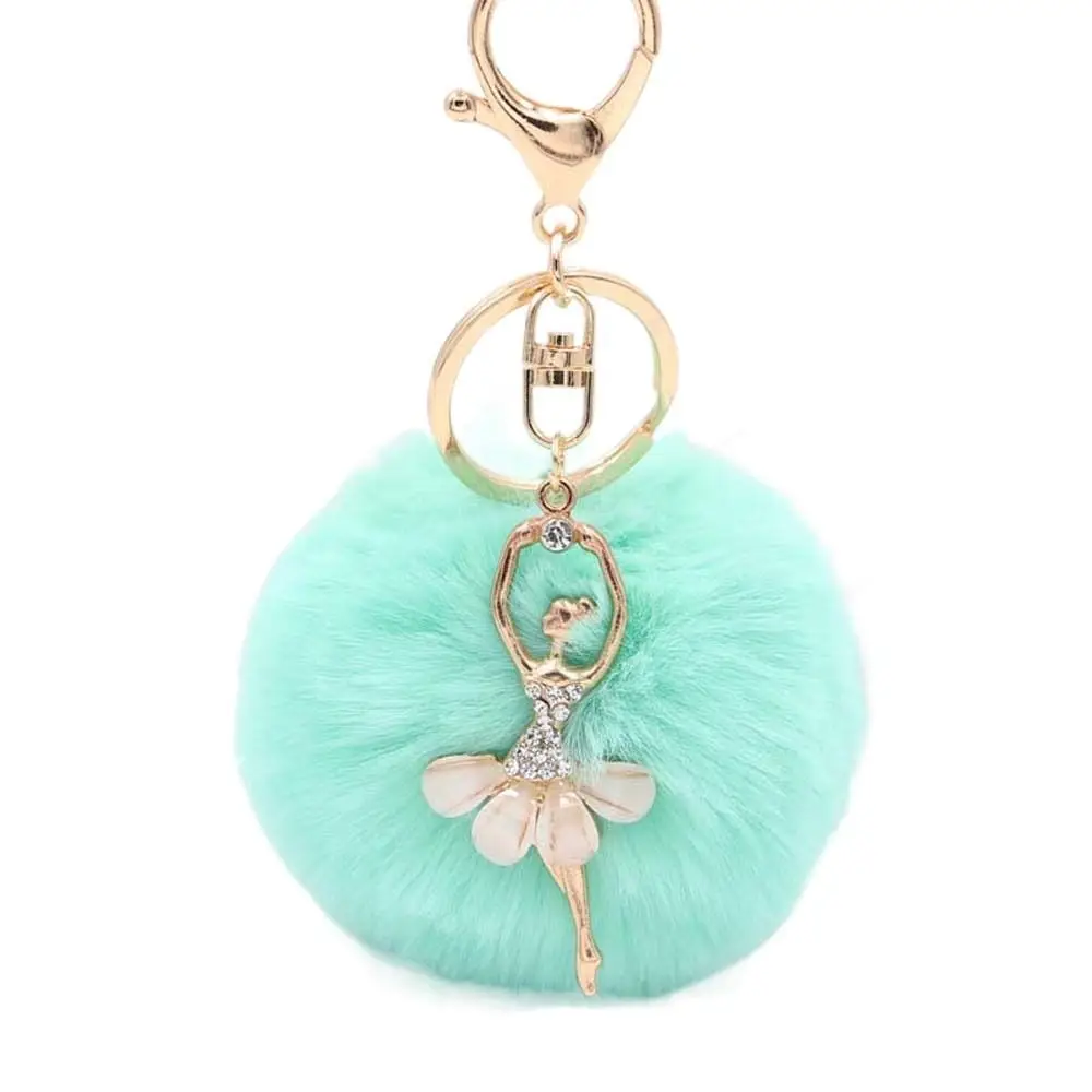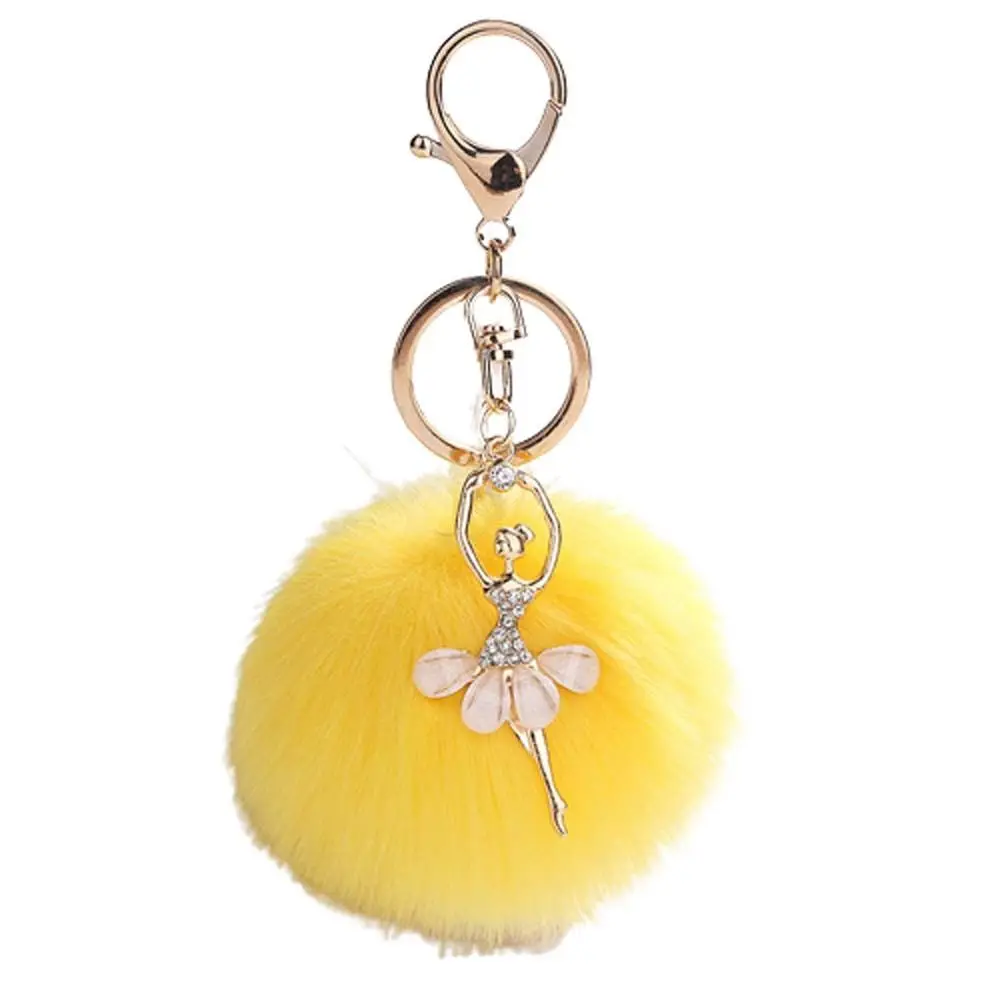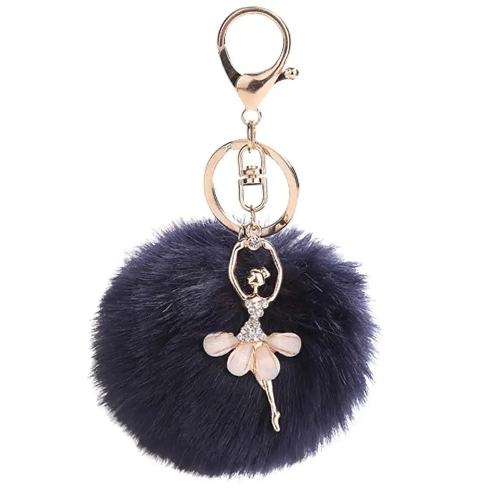 Pom Pom Keyring Women Trinket Fur Ball Keyring Ballet Angel Girl keychain Little Angel Car keychain Fake Fur Key Chain