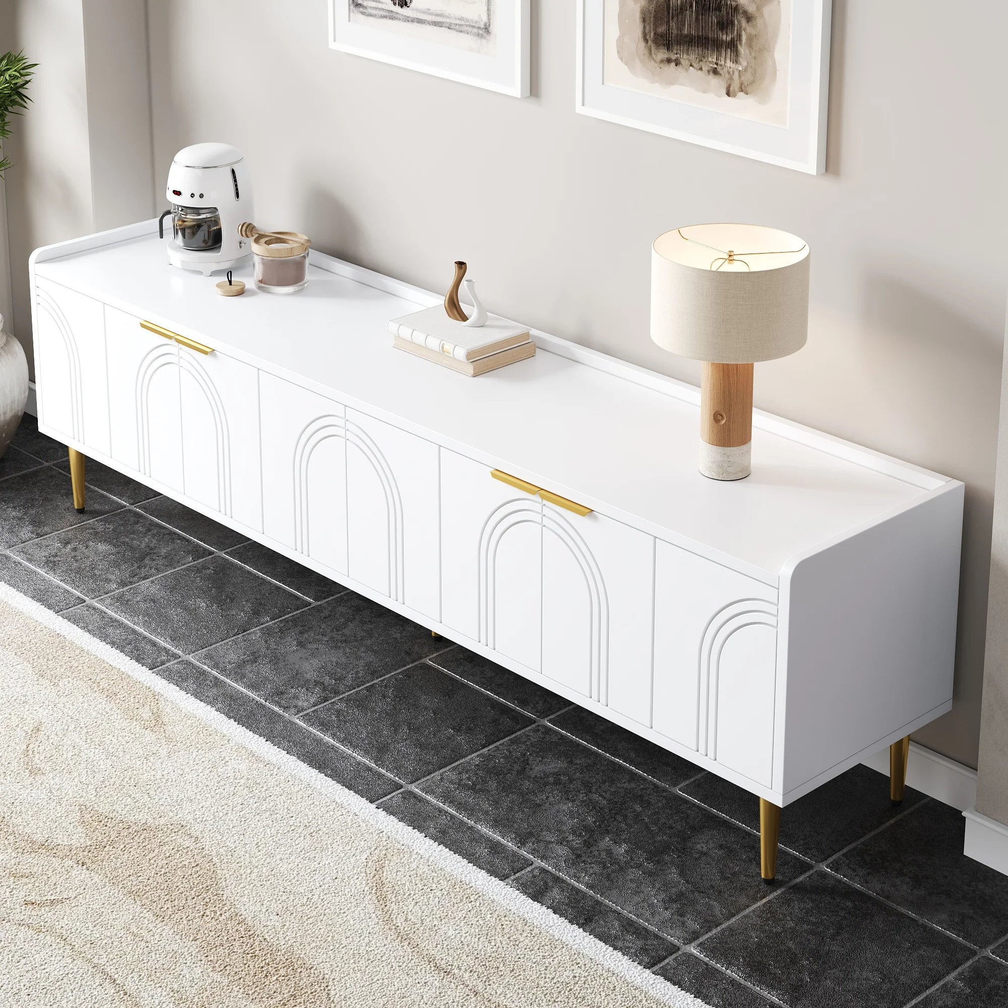 TV Cabinet, Lowboard With Structured Door, TV Furniture, Golden Handles And Golden Feet,170 L X 35 W X 47.5 H(cm)