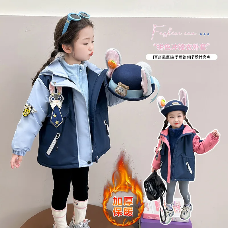 Anime Judy Hopps Girls Winter Thickened Jacket Coat Cartoon Disney Bunny Cop Kids Autumn Winter Children Warm Quilted Jacket