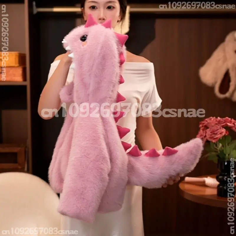 2026 Cute Dinosaur Hooded Coat For Kids Plush Fuzzy Thickened Big Tail Warm Winter Jacket Boys Girls Winter Outerwear Baby' Gift