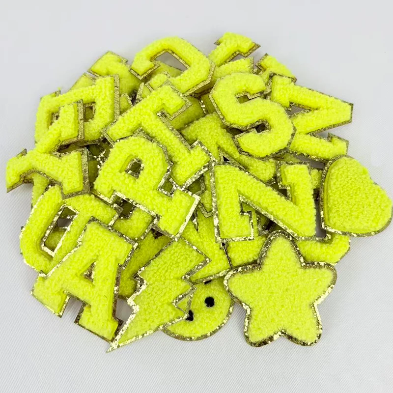 Yellow Letters Sticker Patch Alphabet Towel Embroidered Chenille Patches for Clothing Bags Jacket Stick on Accessories Applique