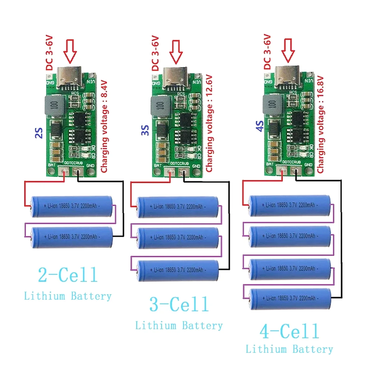 Multi-Cell 2S 3S 4S Type-C To 8.4V 12.6V 16.8V Step-Up Boost LiPo Polymer Li-Ion Charger 7.4V 11.1V 14.8V 18650 Lithium Battery