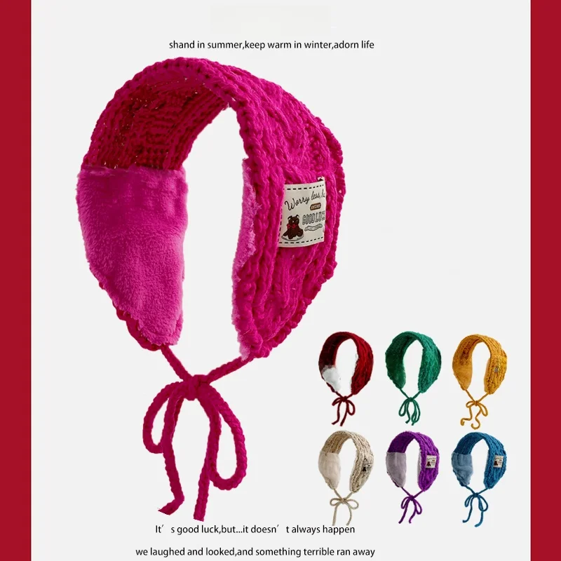 Winter Warm Fce Knitted Headband Ear Covers Bear Letter Patch Handmade Women's Faion Accories Hair Tie Ear Muffs