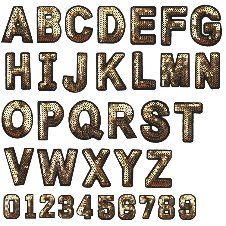 Golden Sequined Embroidery Alphabet Patches with Thermal Adhesive for Ironing Letters Name Patch 0-9 Numbers Sparkle Appliques