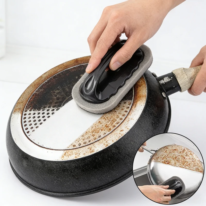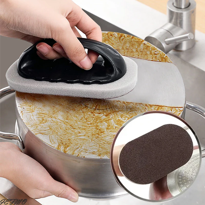 Magic Emery Sponge Brush Wipe Eraser Cleaner Kitchen Bath Rust Strong Decontamination Cleaning Tools With Handle Household Tools