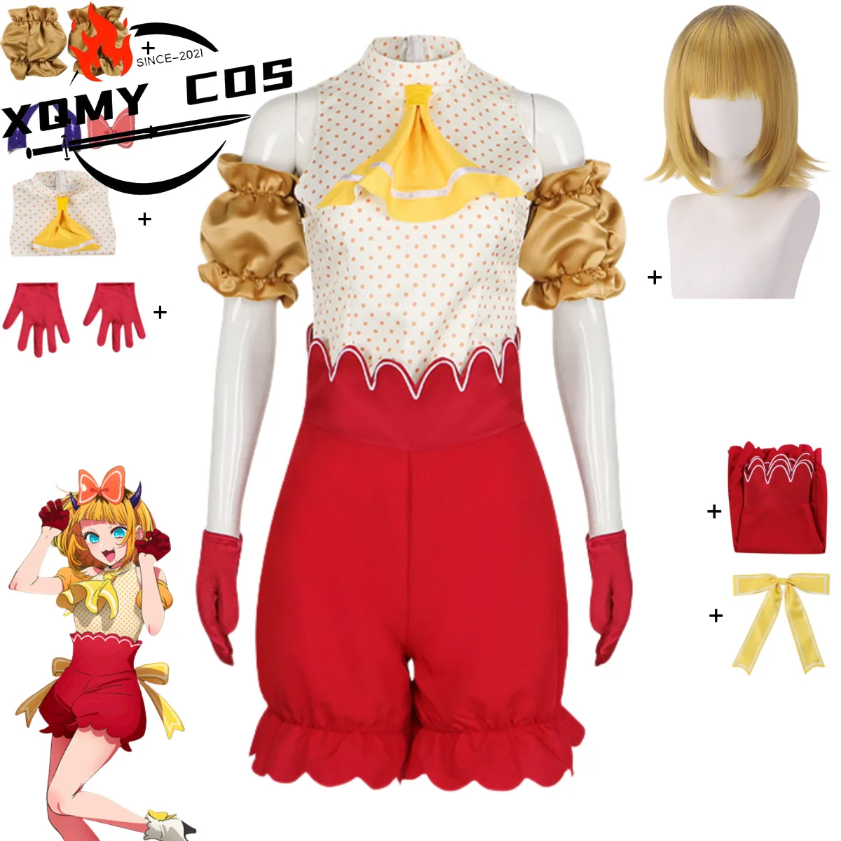 XqAnime Oshi No Ko Season 2 Mem Cyo Cosplay Costume Polka Dot Tops T-shirt Red Shorts Uniform Wig Woman Cute Carnival Party Suit