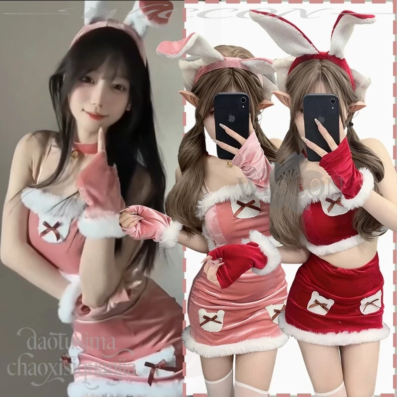 Anime Sexy Rabbit 2025 Christmas Party Night Club Original Design Bunny Girls Furry Top Mini Dress Sweet Headband Halloween Cos