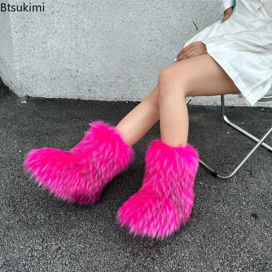 2025 Women Winter Faux Fur Boots Woman Fluffy Plush Warm Snow Boots Luxury Footwear Girls Furry Fur Bottes Fashion Winter Shoes