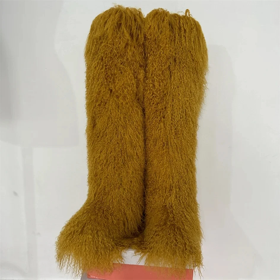 Women Winter Thigh High Fluffy Boots Furry Real Mongolian Fur Long Warm Shoes girls New Designer Plush Knee High Fur Boots