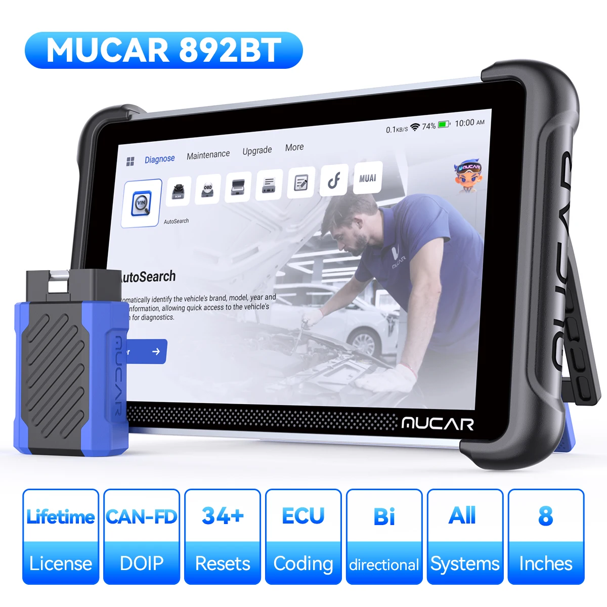 MUCAR 892BTAI Automotive Diagnostic Tool Bi directional Obd2 Scanner Key Programming TKEY 101 ECU Coding CANFD DOIP 35 Resets