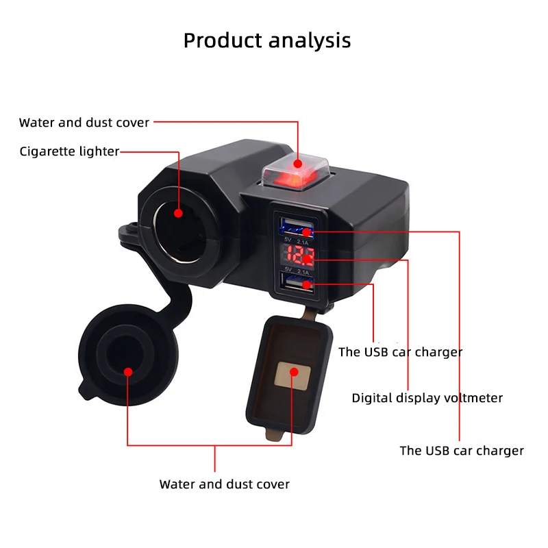 New 5-12V Motorcycle Cigarette Lighter USB Charger Waterproof With Voltmeter